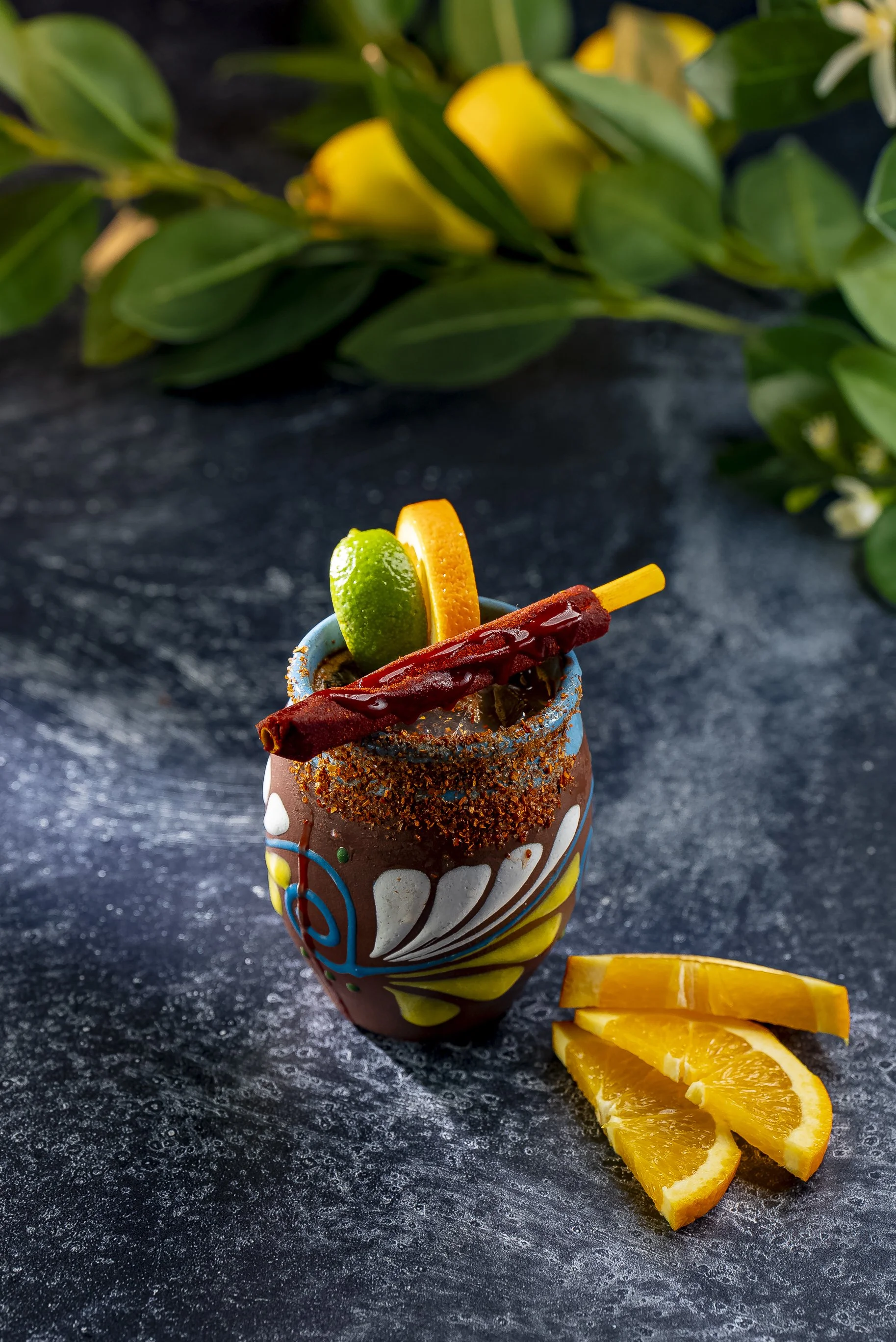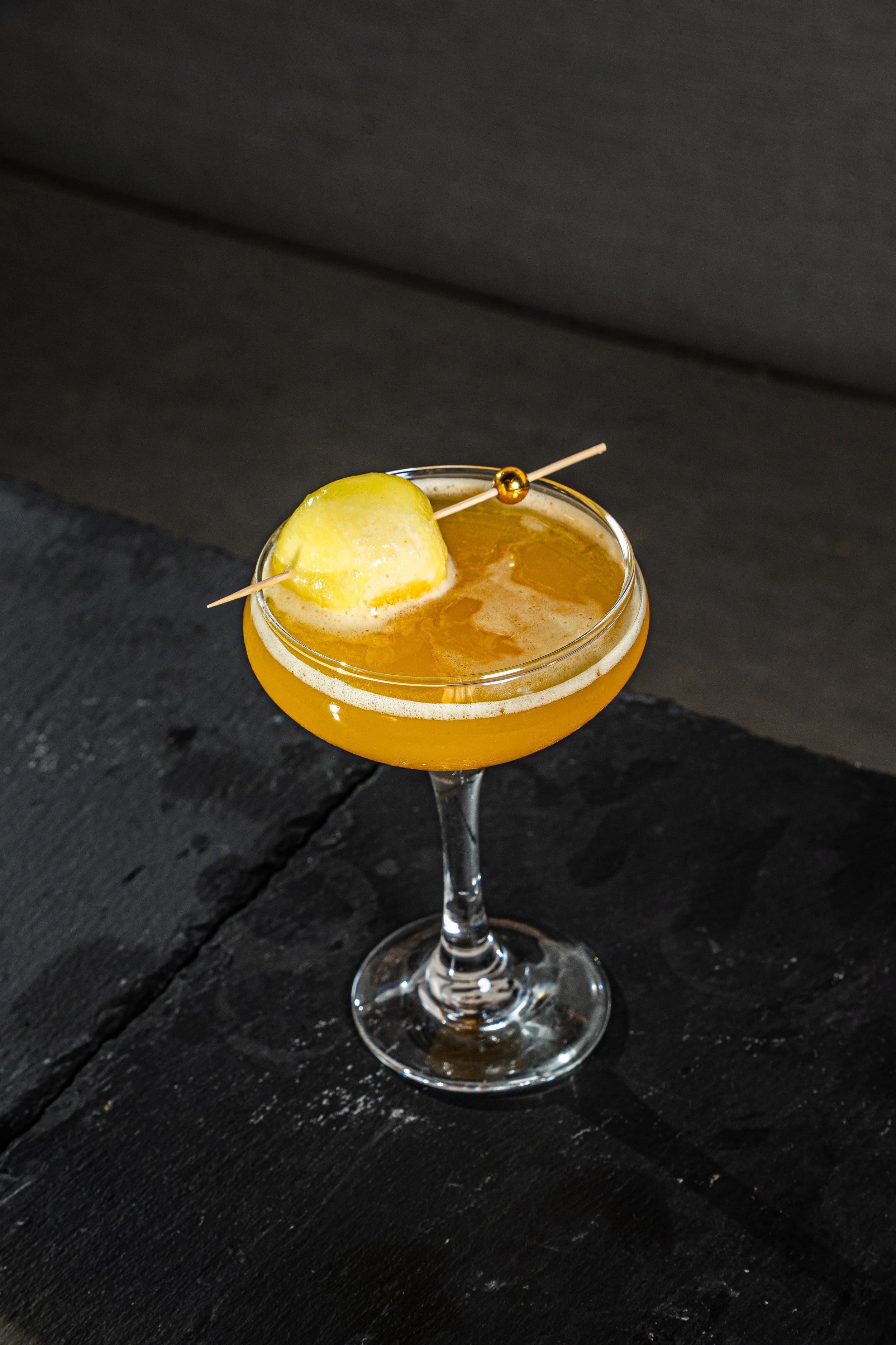 Tequila or mezcal / ancho Reyes / OJ / lime / agave / piña