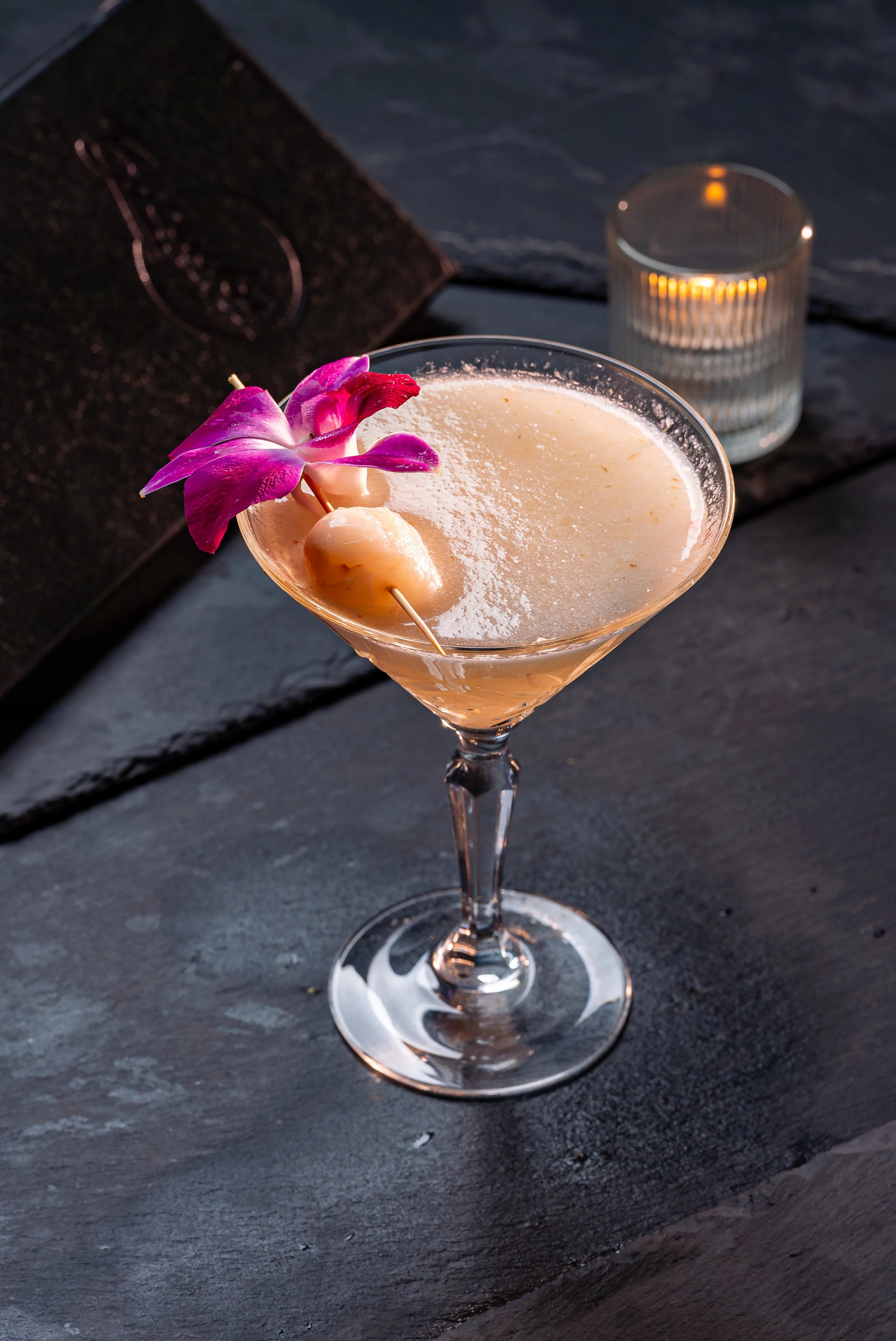 vodka, St. Germain liquor, lychee syrup, lemon juice