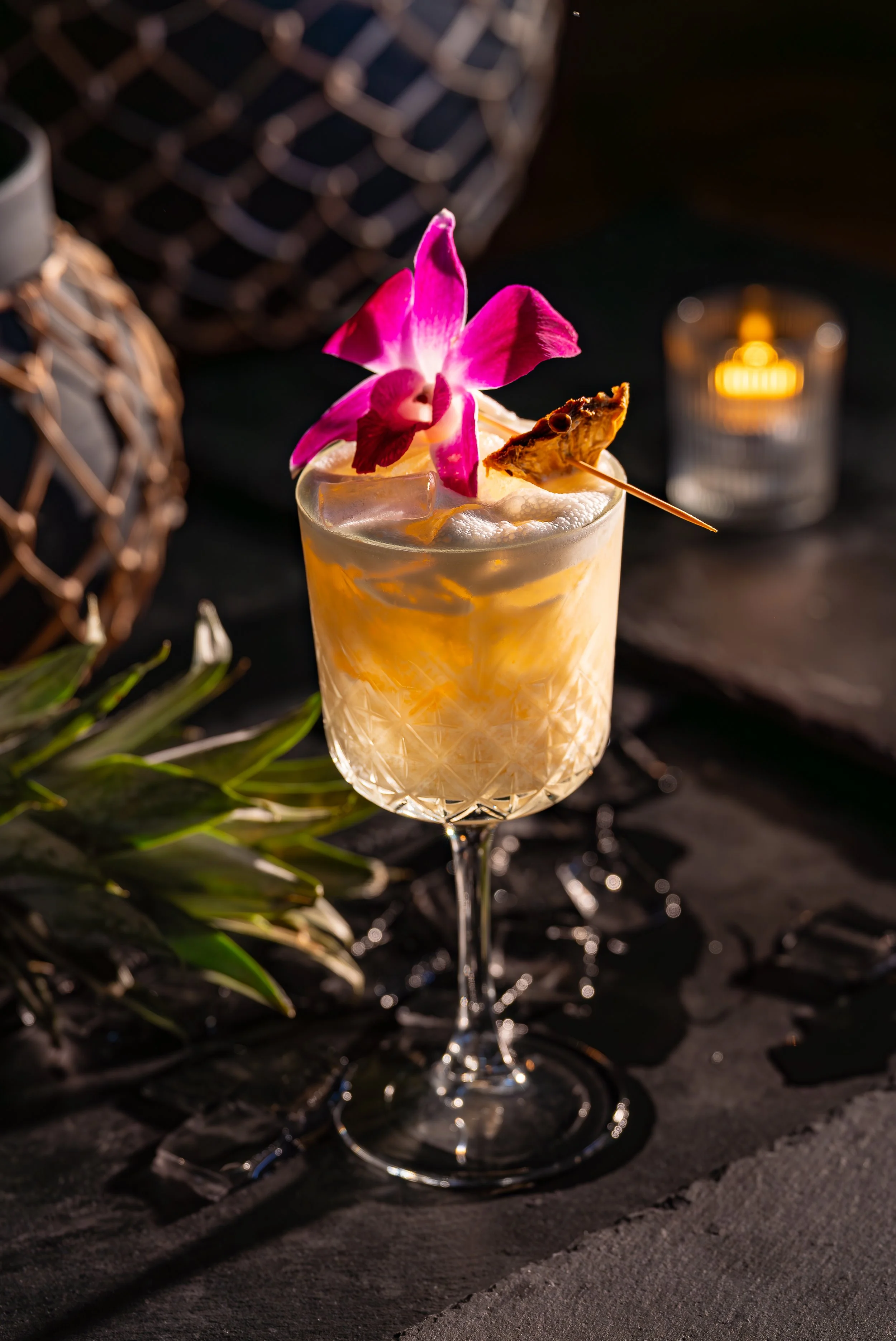 a vibrant combination of vodka, lychee, raspberry, and melon with a milk wash clarification for a tropical escape.